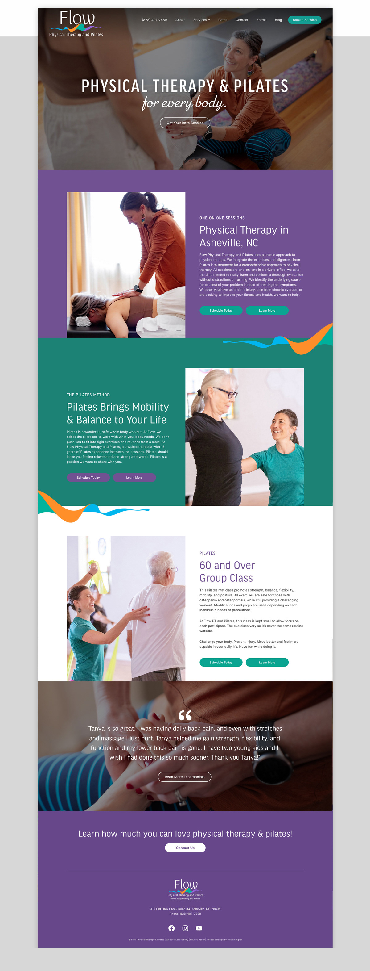 Flow Physical Therapy and Pilates uses a unique approach to physical therapy. They integrate the exercises and alignment from Pilates into treatment for a comprehensive approach to physical therapy. All sessions are one-on-one in a private office, taking the time needed to really listen and perform a thorough evaluation without distractions or rushing. Challenge your body. Prevent injury. Move better and feel more capable in your daily life. Have fun while doing it.