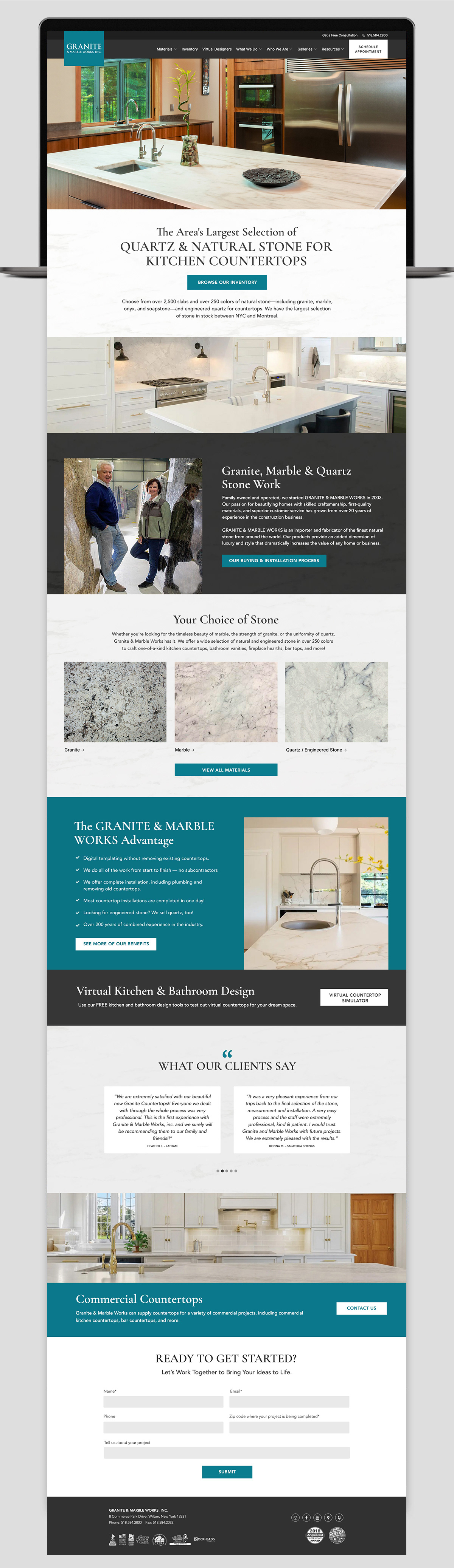GRANITE & MARBLE WORKS is a full-service manufacturer and installer of natural and man-made stone. They have over 1,900 slabs to choose from in their indoor Stone Gallery in Saratoga — the largest selection of quartz, marble and granite between NYC and Montreal.
