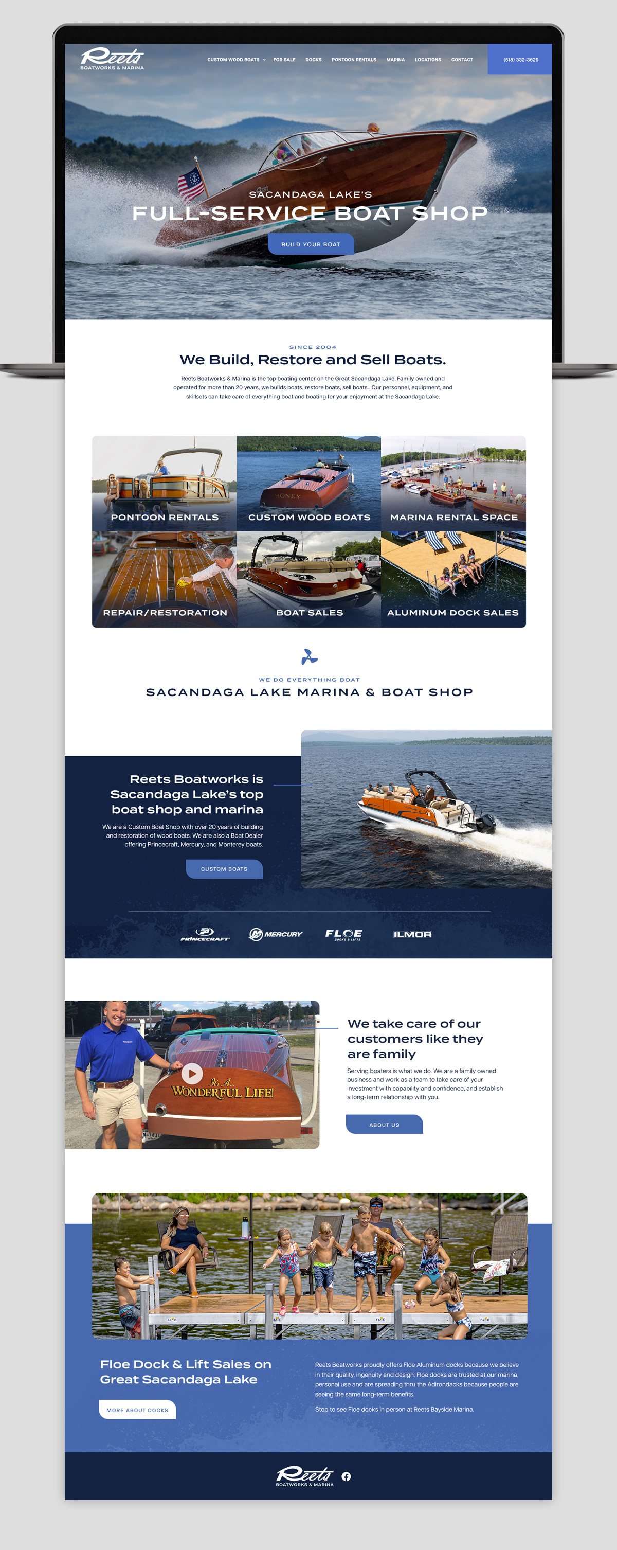 Reets Boatworks & Marina is the top boating center on the Great Sacandaga Lake. Family owned and operated for more than 20 years, they builds boats, restore boats, & sell boats. Their personnel, equipment, and skillsets can take care of everything boat and boating for your enjoyment at the Great Sacandaga Lake and surrounding areas. When it came time to design their website, I focused on showcasing their variety of custom and new boat services and drive traffic to their marina.